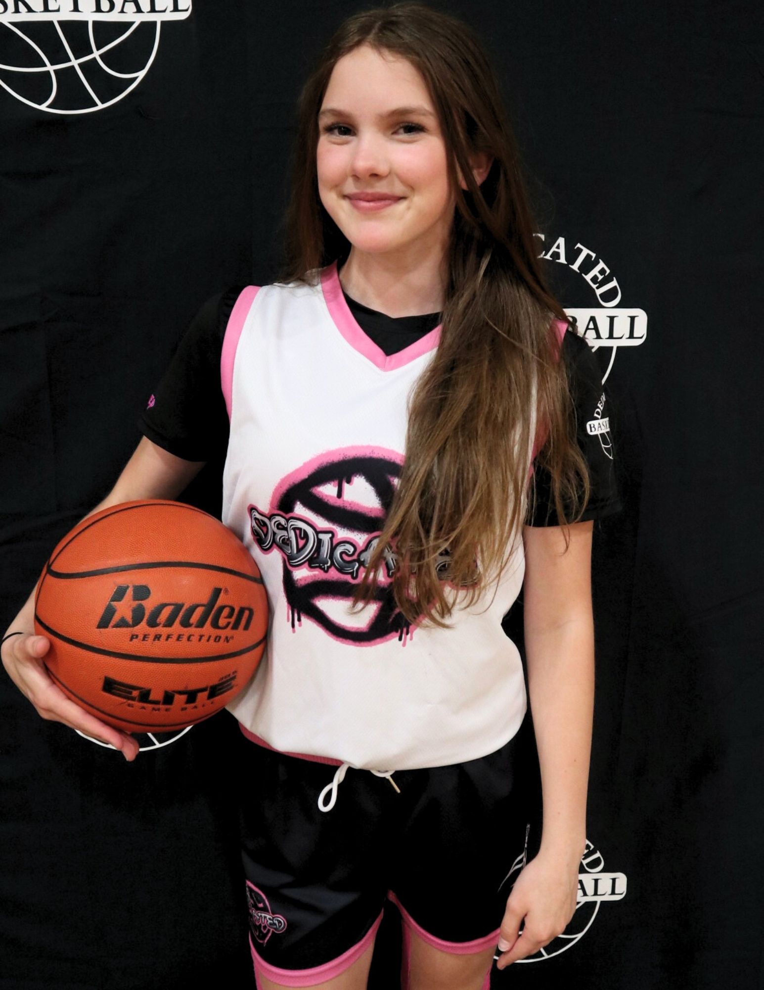 Claire is a vibrant ninth grader who embodies the spirit of enthusiasm both on and off the basketball court. As a shooting guard for her high school team, she showcases her dedication and skills. Previously having played on the She’s Dedicated team, she decided to stay on as a volunteer. Her energy is infectious, whether she’s sprinting down the court or cheering on her teammates from the sidelines, she brings a lively presence that inspires those around her. With dreams of becoming a basketball coach in the future, Claire is determined to not only excel as a player but also to impart her love for the game to the children she works with, fostering a new generation of athletes. Her ambition fuels her drive, as she balances academics and athletics, always looking for opportunities to grow and learn in her journey toward coaching.